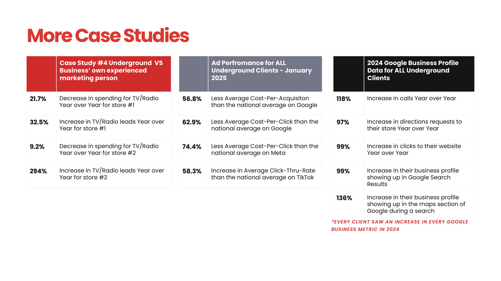 - 101% Increase in Google Business Profile Calls